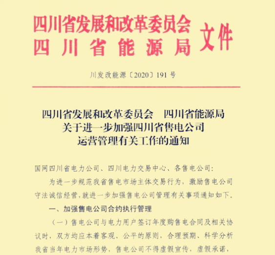 以上就是《關于進一步加強四川省售電公司運營管理有關工作》的通知的具體內(nèi)容。